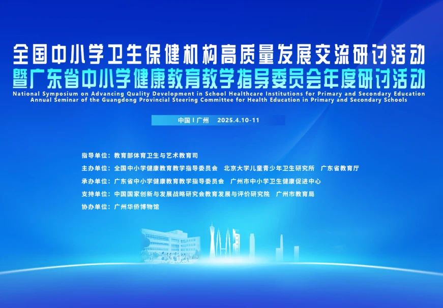 2025年4月10至11日,“全國(guó)中小學(xué)衛(wèi)生保健機(jī)構(gòu)高質(zhì)量發(fā)展交流研討活動(dòng)暨廣東省中小學(xué)健康教育教學(xué)指導(dǎo)委員會(huì)年度研討活動(dòng)”在廣州成功舉辦。活動(dòng)由教育部體育衛(wèi)生與藝術(shù)教育司指導(dǎo),全國(guó)中小學(xué)健康教育教學(xué)